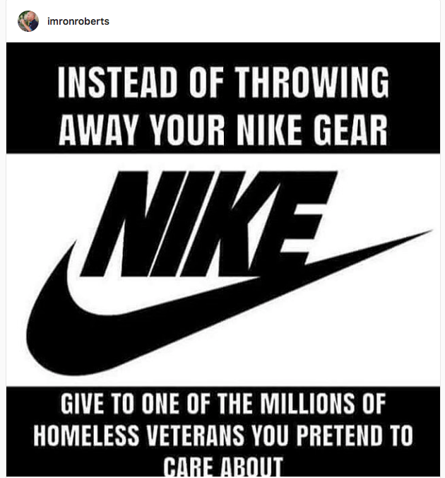 As you can expect with the announcement of Nike’s deal with Kaepernick, those who see Kaep’s protest as unpatriotic were vocal and visible in the 24 hours following the announcement of the deal. They cut swooshes off of their socks, spurred the hashtag #boycottNike and lit fire to their sneakers (some of them while wearing them).